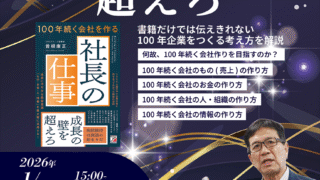 2025年6月16日に「100年続く会社の社長の仕事」を明日香出版から出版しました。その発刊でクラウドファンディングを行いました。様々のリターンで多くの支援をいただきました。そして、今回のセミナーが最終のリターンです。 これは社労士法人とう...