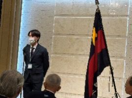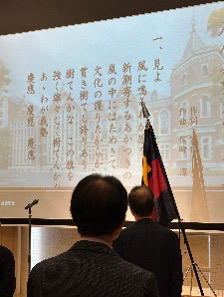 まずは塾歌斉唱です。塾歌を歌うのは学生に戻ったようで気持ち良いです。久しぶりに3番まで歌いました。