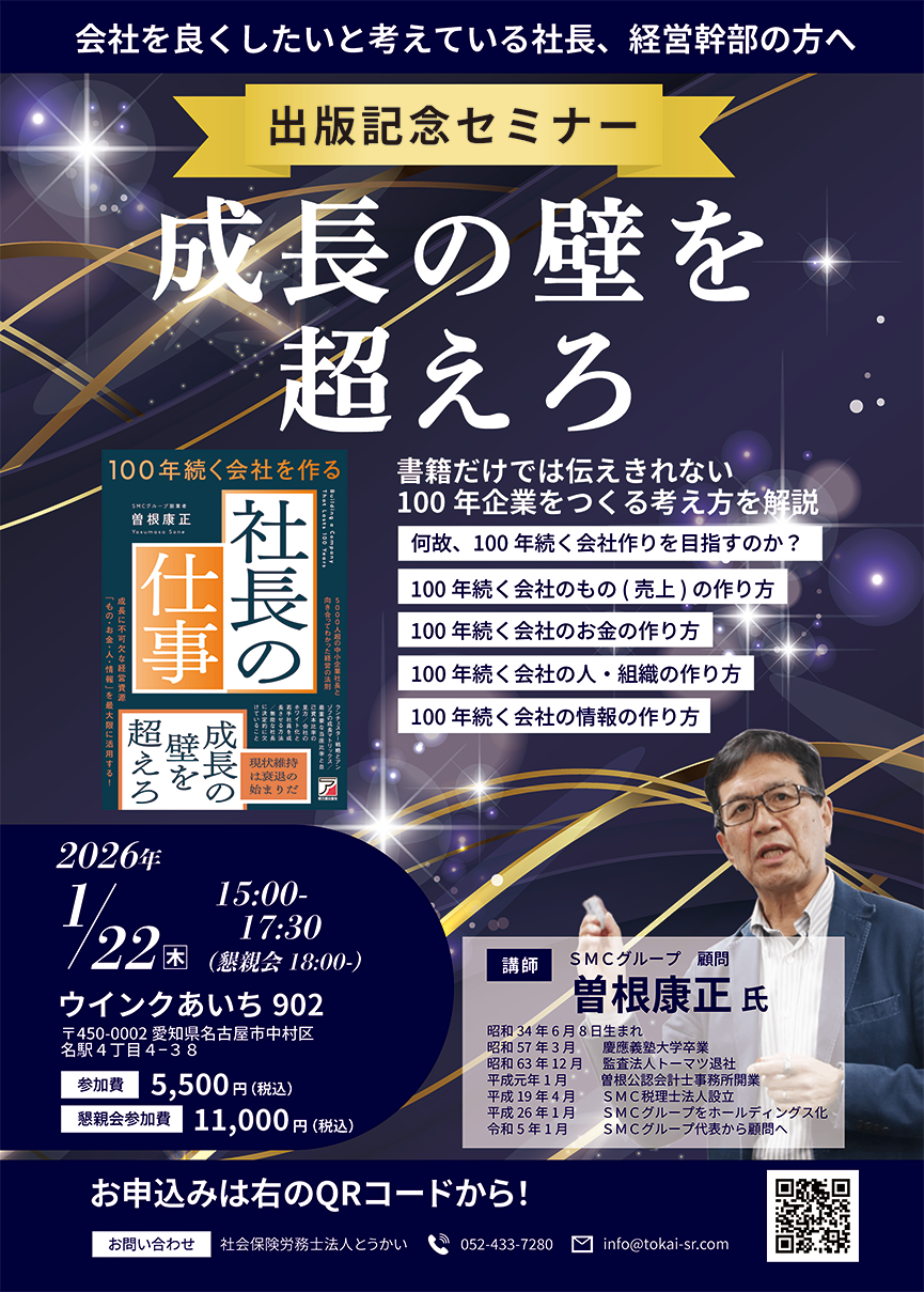 これは社労士法人とうかいの久野社労士が「曽根康正 出張講演+書籍100冊」のリターンで支援を頂いたものです。テーマは「成長の壁を超えろ」です。今回はリターン最後のセミナーなので内容は充実しています。6月から始まったリターンで多くの出版セミナー、出張講演、100年続く会社のパネルディスカッションなどで得た経験や知見を活かした最高のセミナーがこの「成長の壁を超えろ」です。