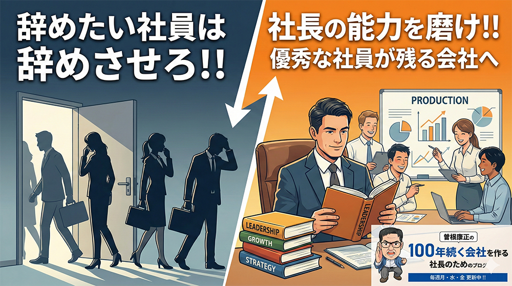 「辞めたい社員は辞めさせろ!!」は裏を返せば「辞めたくならないような会社にする」ことがとても重要だと思っています。更にできない社員が辞めたくなり、優秀な社員が残りたくなるような会社にしたいと誰でも思いますよね。